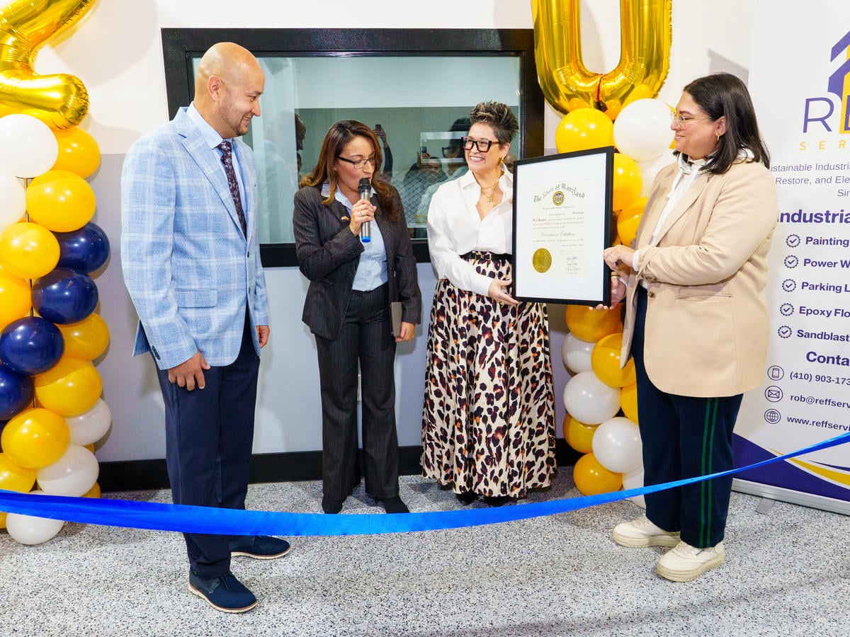 Bessy Blum, representing the Metro Baltimore Hispanic Contractors Association and CFG Bank, spoke about the importance of empowering Hispanic entrepreneurs and strengthening pathways for business growth, focusing on the value of collaboration and community impact.
